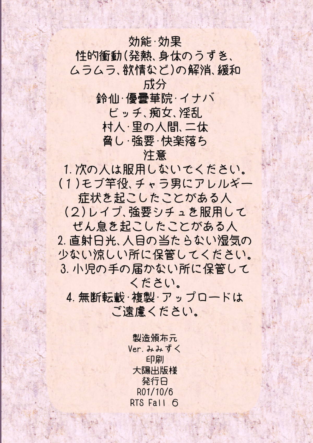 幻想郷エロ能力化異変12 人間を興奮させる程度の能力